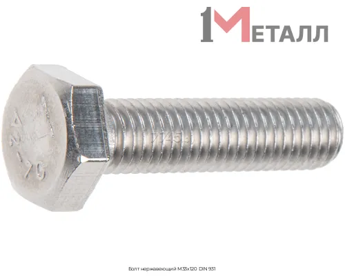 Купить болт нержавеющий М33х120 DIN 931 по цене 25 руб. в Москве вы можете в компании 1-Металл. Для этого оформите заказ на сайте или по телефону +7 (495) 431-43-33. У нас постоянно в наличии огромный ассортимент металлопроката, лучшие цены и быстрая доставка. На весь ассортимент товаров предоставляются сертификаты и Госты.